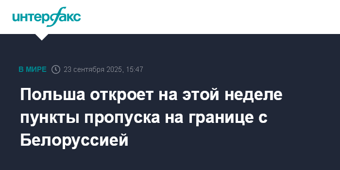 Москва. 23 сентября. INTERFAX.RU - Премьер-министр Польши Дональд Туск на заседании правительства объявил о решении открыть закрытую в преддверии учений "Запад-2025" границу с Белоруссией, сообщают польские СМИ.