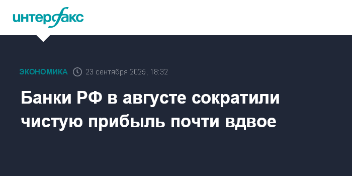 Банки РФ в августе сократили чистую прибыль почти вдвое