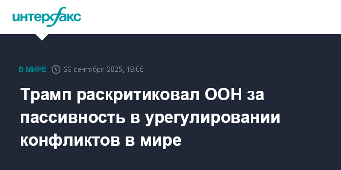 Москва. 23 сентября. INTERFAX.RU - Президент США Дональд Трамп считает, что ООН не предпринимает достаточных усилий для решения международных конфликтов.