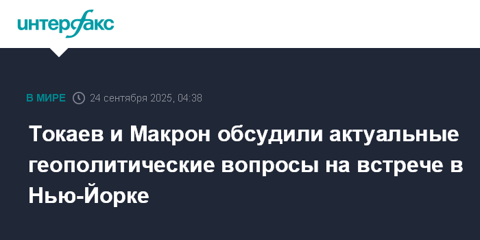 Токаев и Макрон обсудили актуальные геополитические вопросы на встрече в Нью-Йорке