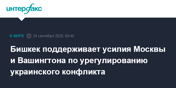 Москва. 24 сентября. INTERFAX.RU - Президент Киргизии Садыр Жапаров выразил поддержку усилиям президента США Дональда Трампа и президента России Владимира Путина в поиске решений по мирному урегулированию конфликта на Украине.