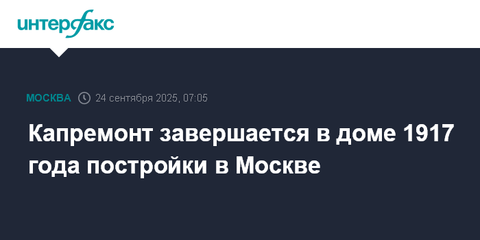Москва. 24 сентября. INTERFAX.RU - Специалисты завершают капитальный ремонт дома 1917 года постройки в центре Москвы, сообщили в пресс-службе фонда капремонта (ФКР).