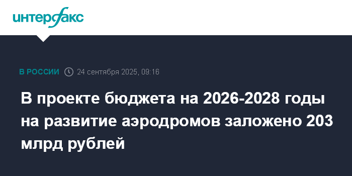 В проекте бюджета на 2026-2028 годы на развитие аэродромов заложено 203 млрд рублей