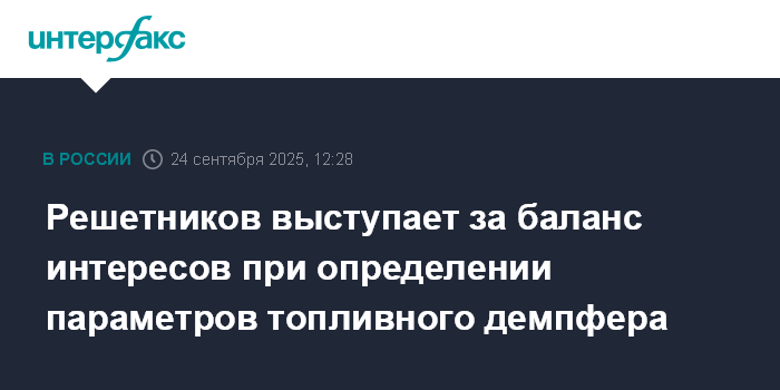 Москва. 24 сентября. INTERFAX.RU - Глава Минэкономразвития Максим Решетников выступил за сохранение баланса интересов при определении параметров топливного демпфера.