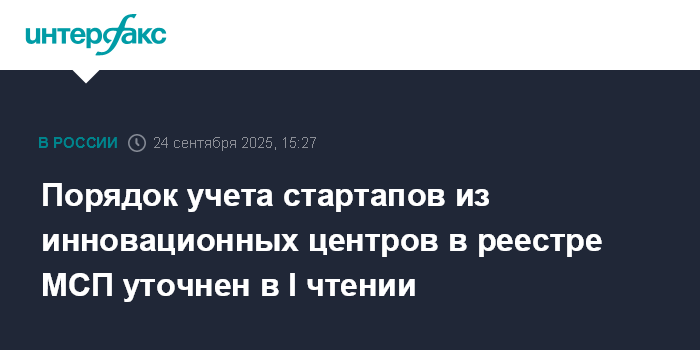 Порядок учета стартапов из инновационных центров в реестре МСП уточнен в I чтении