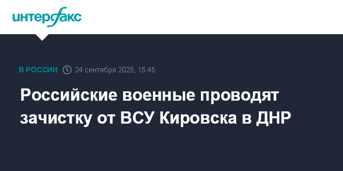 Москва. 24 сентября. INTERFAX.RU - Российские подразделения в ходе операции в Кировске использовали эффект внезапности, вклинились в глубину обороны ВСУ и сейчас проводят зачистку населенного пункта, сообщили в Минобороны РФ.