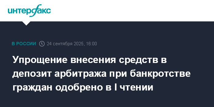 Упрощение внесения средств в депозит арбитража при банкротстве граждан одобрено в I чтении