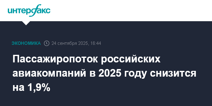 Пассажиропоток российских авиакомпаний в 2025 году снизится на 1,9%