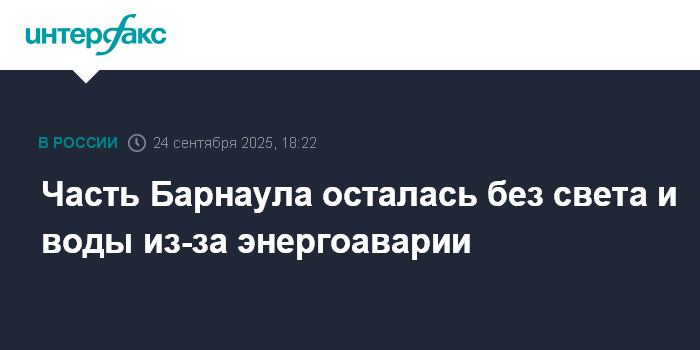 Москва. 24 сентября. INTERFAX.RU - Несколько районов Барнаула (Алтайский край) лишились в среду энерго- и водоснабжения в результате энергоаварии, сообщает Центр управления города.