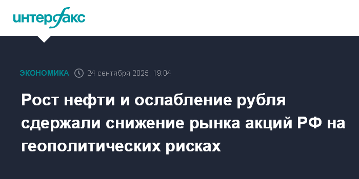 Москва. 24 сентября. INTERFAX.RU - Рынок акций РФ в среду снизился из-за опасений эскалации геополитической напряженности после резких заявлений президента США Дональда Трампа о ситуации вокруг конфликта на Украине, а также на фоне предложений Минфина РФ повысить НДС с 20% до 22% для финансирования расходов на оборону; откат частично был компенсирован подорожавшей нефтью (фьючерс на Brent поднялся до $69 за баррель), при этом инвесторы оценивали проект бюджета РФ на следующие три года. Индекс МосБиржи на фоне ослабления рубля смог отскочить выше 2720 пунктов после утреннего провала в район 2675 пунктов (минимум с 14 июля).
