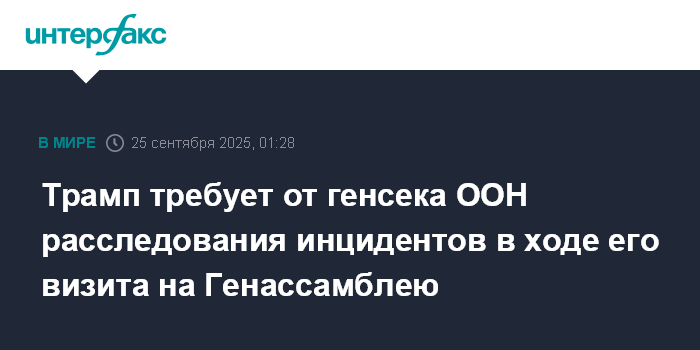 "Я направляю копию этого письма генеральному секретарю и требую немедленного расследования", - написал Трамп в соцсети The Truth Social.