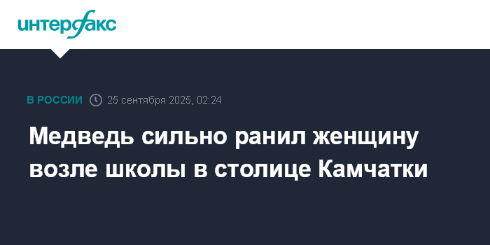 Москва. 25 сентября. INTERFAX.RU - Медведь напал на женщину возле школы в Петропавловске-Камчатском в четверг утром, пострадавшая госпитализирована в реанимацию, сообщает пресс-служба правительства Камчатского края.