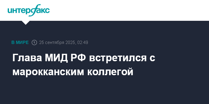 Москва. 25 сентября. INTERFAX.RU - Министр иностранных дел России Сергей Лавров провел встречу с главой МИД Марокко Насером Буритой, стороны подтвердили нацеленность на координацию для урегулирования кризисных ситуаций на Ближнем Востоке, в Северной Африке и Сахаро-Сахельском регионе, сообщает российское внешнеполитическое ведомство в четверг.