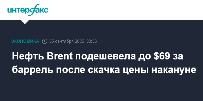 Нефть Brent подешевела до $69 за баррель после скачка цены накануне