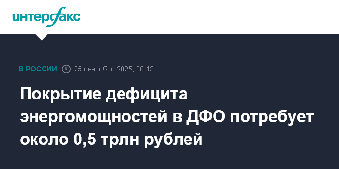 Покрытие дефицита энергомощностей в ДФО потребует около 0,5 трлн рублей