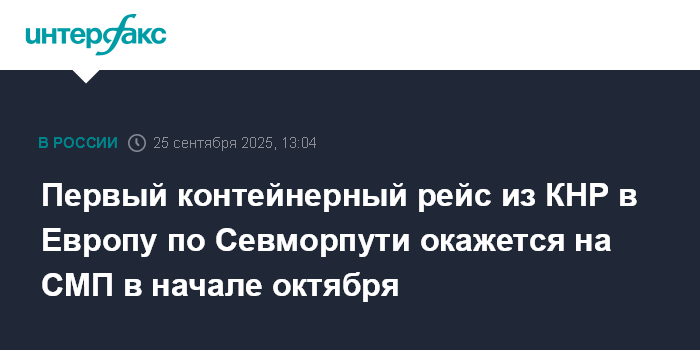 Первый контейнерный рейс из КНР в Европу по Севморпути окажется на СМП в начале октября