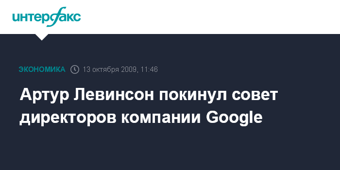 Москва. 13 октября. INTERFAX.RU – Артур Левинсон покинул совет директоров компании Google. Как сообщает британская телерадиокорпорация BBC, при этом Левинсон сохранил за собой место в совете директоров Apple, членом которого он также является. По данным BBC, уход Левинсона из руководства Google позволит снять претензии, предъявляемые бизнесмену Федеральной торговой комиссией США, в которой полагают, что совмещение должностей в этих двух компаниях противоречит антимонопольному законодательству страны.