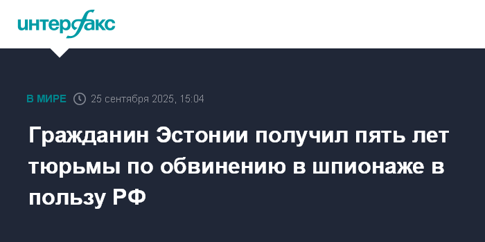 Гражданин Эстонии получил пять лет тюрьмы по обвинению в шпионаже в пользу РФ