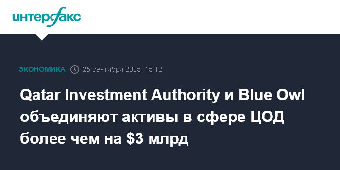 Москва. 25 сентября. INTERFAX.RU - Катарский суверенный фонд Qatar Investment Authority (QIA) в партнерстве с американской инвесткомпанией Blue Owl будет финансировать строительство центров обработки данных и инвестировать в них.