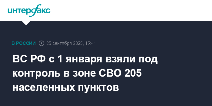 ВС РФ с 1 января взяли под контроль в зоне СВО 205 населенных пунктов