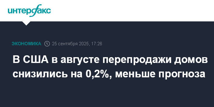 В США в августе перепродажи домов снизились на 0,2%, меньше прогноза