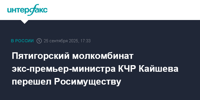 Пятигорский молкомбинат экс-премьер-министра КЧР Кайшева перешел Росимуществу