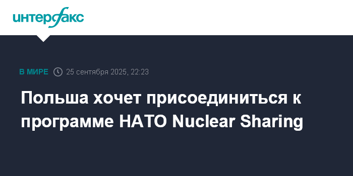Москва. 25 сентября. INTERFAX.RU - Президент Польши Кароль Навроцкий заявил, что будет добиваться включения страны в программу НАТО Nuclear Sharing по размещению ядерного оружия.