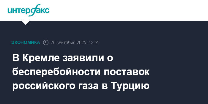 В Кремле заявили о бесперебойности поставок российского газа в Турцию