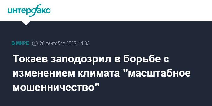 "Я принимал участие в глобальных климатических саммитах в Дубае и Баку. Своими впечатлениями я поделился с коллегами и членами правительства, откровенно заявив, что все происходящее больше напоминает масштабное мошенничество. Мои слова может подтвердить премьер-министр Олжас Бектенов. На днях президент США Дональд Трамп выступил с трибуны ООН с аналогичным заявлением: "Изменение климата - это величайшее мошенничество, когда-либо совершенное в мире". Поэтому Казахстан объявил об официальных планах в течение 35 лет осуществить полную декарбонизацию", - сказал Токаев.