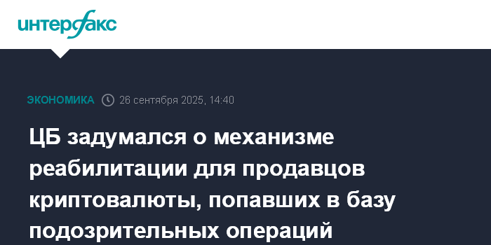 ЦБ задумался о механизме реабилитации для продавцов криптовалюты, попавших в базу подозрительных операций