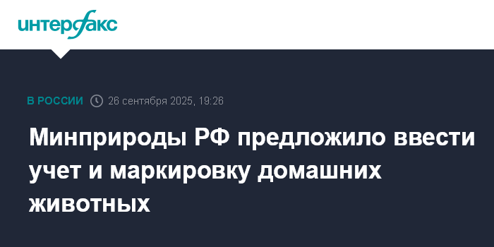 Москва. 26 сентября. INTERFAX.RU - Минприроды России предлагает ввести государственный учёт и маркировку домашних животных, владельцы питомцев смогут самостоятельно выбрать способ маркировки - чипирование или специальный ошейник, прежде всего процедура затронет собак.
