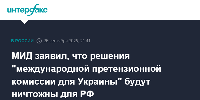 МИД заявил, что решения "международной претензионной комиссии для Украины" будут ничтожны для РФ