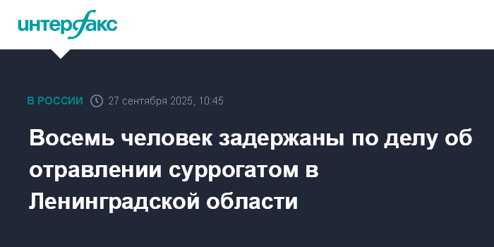 Москва. 27 сентября. INTERFAX.RU - В Ленинградской области восемь человек задержаны по факту отравления поддельным алкоголем, повлекшего смерть, сообщила прокуратура области.