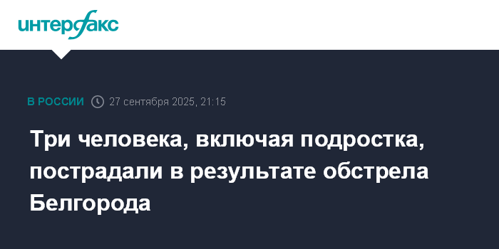 Москва. 27 сентября. INTERFAX.RU - Трое мирных жителей, в том числе подросток, пострадали в результате ракетного обстрела Белгорода, сообщил глава региона Вячеслав Гладков в субботу.