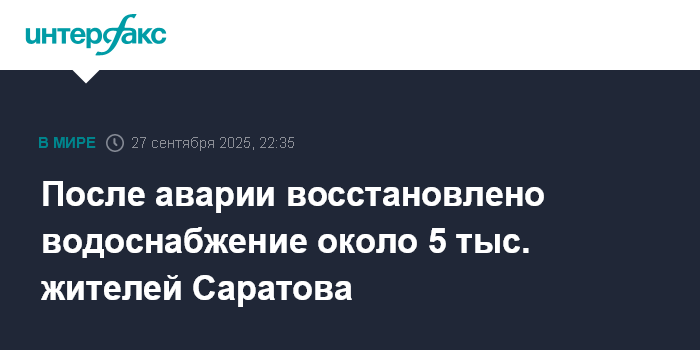 Москва. 27 сентября. INTERFAX.RU - Коммунальные службы устранили крупную аварию на сетях водоканала в Саратове, сообщили "Интерфаксу" в мэрии.