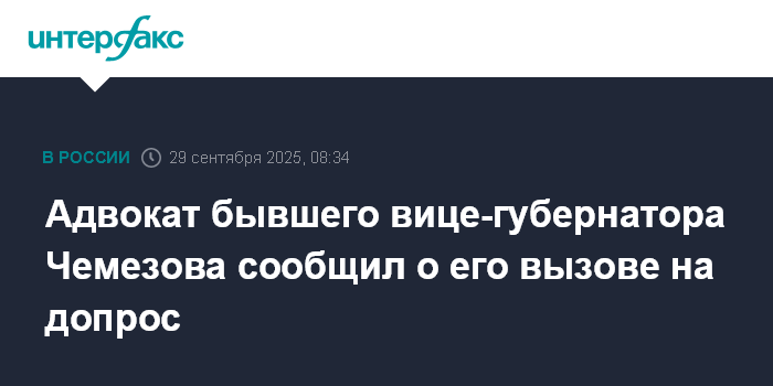 Москва. 29 сентября. INTERFAX.RU - Бывшего вице-губернатора Свердловской области Олега Чемезова вызвали на допрос, сообщил "Интерфаксу" адвокат Михаил Яшин.