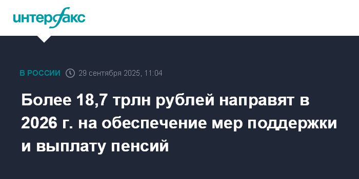 Более 18,7 трлн рублей направят в 2026 г. на обеспечение мер поддержки и выплату пенсий