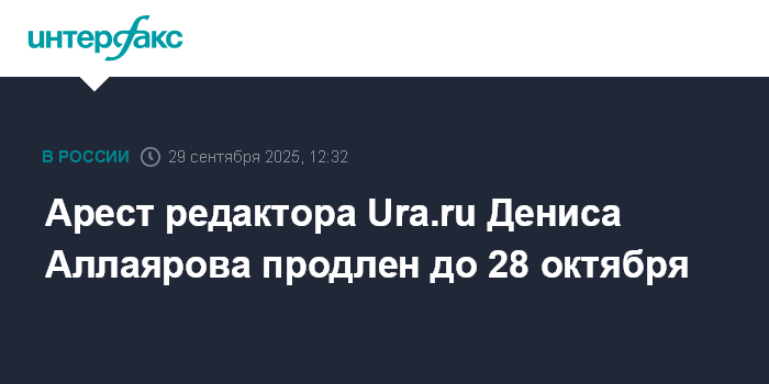 Арест редактора Ura.ru Дениса Аллаярова продлен до 28 октября