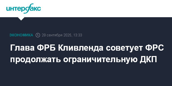 Глава ФРБ Кливленда советует ФРС продолжать ограничительную ДКП