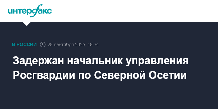 Москва. 29 сентября. INTERFAX.RU - Руководитель управления Росгвардии по Северной Осетии Валерий Голота задержан по делу о взятке, сообщили "Интерфаксу" в правоохранительных органах.
