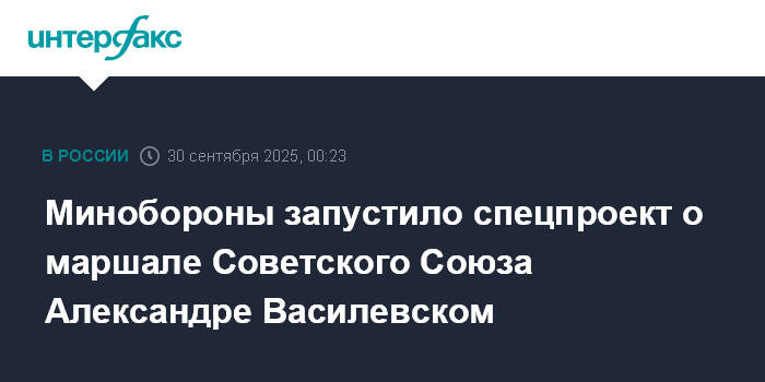 Москва. 30 сентября. INTERFAX.RU - Министерство обороны РФ сообщило о запуске нового проекта к 130-летию со дня рождения маршала Советского Союза Александра Василевского.