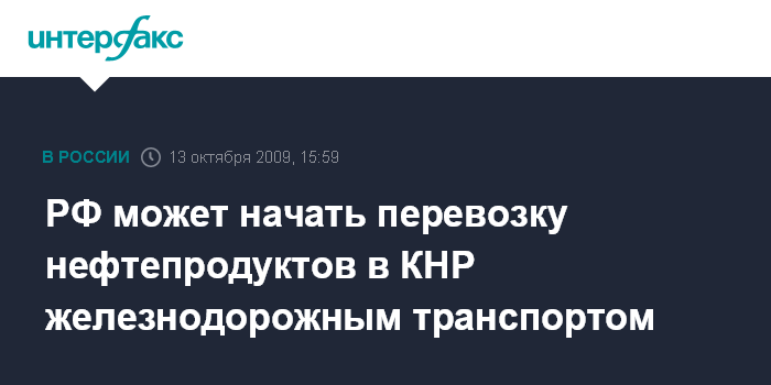 Москва. 13 октября. INTERFAX.RU - Россия рассматривает возможность организации перевозок в Китай нефтепродуктов железнодорожным транспортом, сообщил вице-премьер РФ Игорь Сечин.