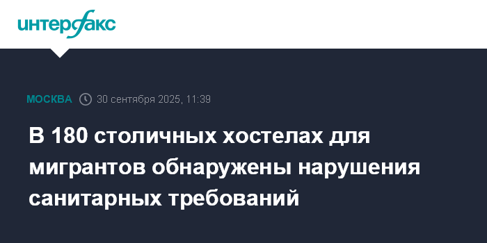 Москва. 30 сентября. INTERFAX.RU - Летом в Москве состоялась серия проверок хостелов для мигрантов, расположенных в многоквартирных домах, в 180 хостелах нашли нарушения санитарных требований, сообщили в столичном управлении Роспотребнадзора.