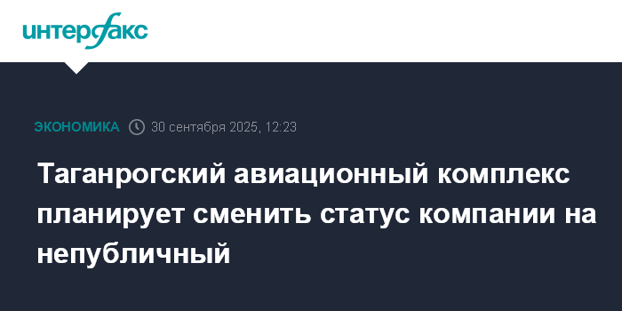 Таганрогский авиационный комплекс планирует сменить статус компании на непубличный