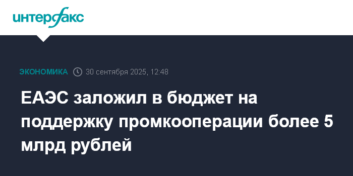 ЕАЭС заложил в бюджет на поддержку промкооперации более 5 млрд рублей