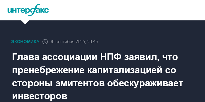 Глава ассоциации НПФ заявил, что пренебрежение капитализацией со стороны эмитентов обескураживает инвесторов
