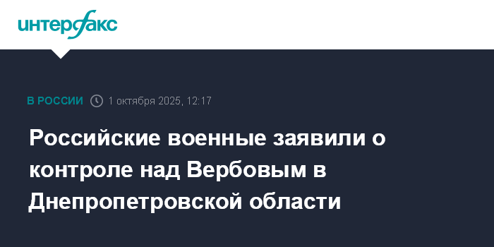 Москва. 1 октября. INTERFAX.RU - Вооруженные силы России взяли под контроль село Вербовое в Днепропетровской области, сообщило министерство обороны РФ в среду.