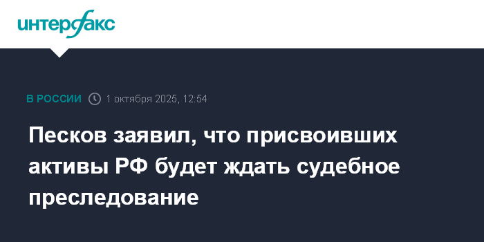 Песков заявил, что присвоивших активы РФ будет ждать судебное преследование