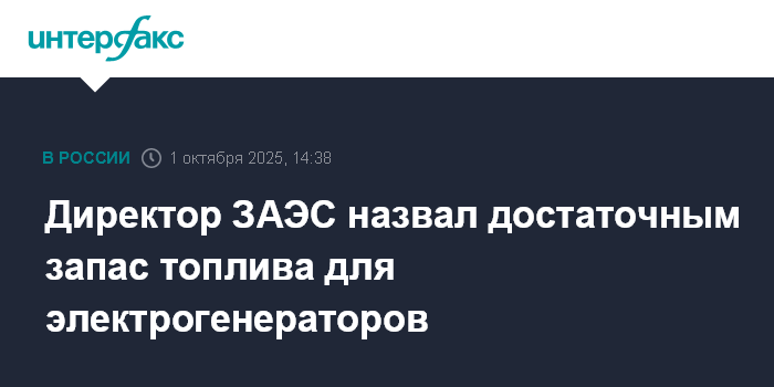 Директор ЗАЭС назвал достаточным запас топлива для электрогенераторов