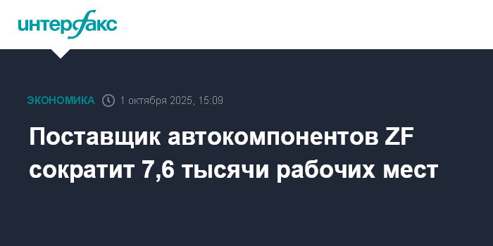 Москва. 1 октября. INTERFAX.RU - Германский производитель автокомпонентов ZF Friedrichshafen AG сокращает 7,6 тысячи рабочих мест в подразделении по выпуску электроприводов, сообщила компания.